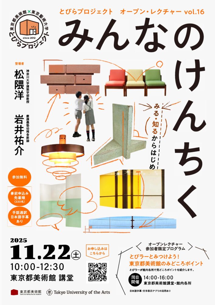 第16回となる今回は「みんなのけんちく 〜みる・知るからはじめよう〜」と題し、建築を介したコミュニケーションの実践を切り口に、日常の中で当たり前のように存在する「建築」を、みること・知ることから捉え直し、そこに紡がれ続けてきた豊かな物語や社会とのつながりに目を向け、考えを巡らせていきたいと思います。