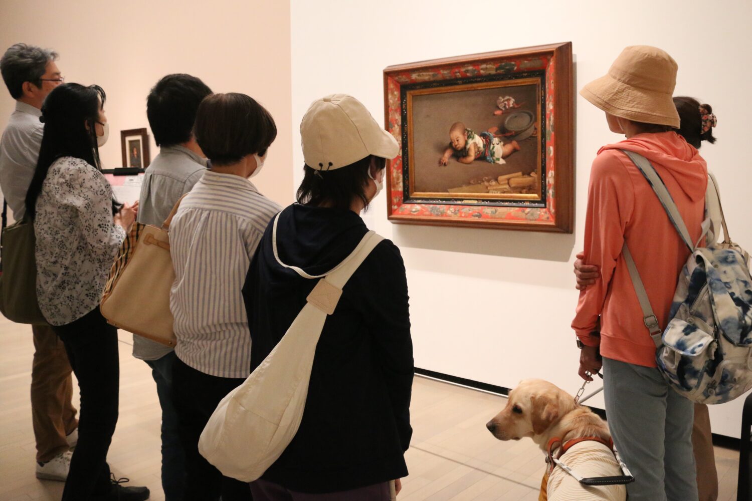 「いつもとなりにいるから 日本と韓国、アートの80年」展の会場内で、目の見える人・見えない人の2人のナビゲーターやエデュケーターとともに、言葉を通してグループで作品を鑑賞します。