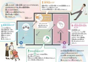 午後に実施したワークショップでは、さまざまなシーンを想定するために筆談あり、手話通訳あり、手話通訳なしという条件でそれぞれのエリアごとに4つのチーム分けをし、〜ながラーの皆さんに進行内容を考えてもらいながら、取り組みました。